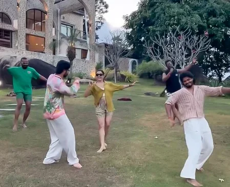 ಮುಂಬೈ: ನವವಿವಾಹಿತ ದಂಪತಿ ರಶ್ಮಿಕಾ ಮಂದಣ್ಣ (Rashmika Mandanna) ಮತ್ತು ವಿಜಯ್ ದೇವರಕೊಂಡ (Vijay Deverakonda) ಮದುವೆಯ ನಂತರ ಮೊದಲ ಬಾರಿಗೆ ಒಟ್ಟಿಗೆ ನೃತ್ಯ ಮಾಡುತ್ತಿರುವ ಮುದ್ದಾದ ಕ್ಷಣದ ವೀಡಿಯೊವನ್ನು ನಟ ಆನಂದ್ ದೇವರಕೊಂಡ (Anand Deverakonda) ಸಾಮಾಜಿಕ ಜಾಲತಾಣದಲ್ಲಿ ಹಂಚಿಕೊಂಡಿದ್ದಾರೆ. ಬುಧವಾರ ತಮ್ಮ ಸಾಮಾಜಿಕ ಮಾಧ್ಯಮ ಖಾತೆಯಲ್ಲಿ ಆನಂದ್ ಪೋಸ್ಟ್ ಮಾಡಿದ ವೀಡಿಯೊದಲ್ಲಿ, ವಿಜಯ್ ಮತ್ತು ರಶ್ಮಿಕಾ ಸ್ನೇಹಿತರೊಂದಿಗೆ ಹಸಿರು ಹುಲ್ಲಿನ ಮೈದಾನದಲ್ಲಿ ಉಲ್ಲಾಸದಿಂದ ನೃತ್ಯ...