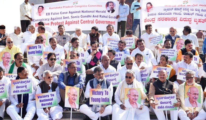ನ್ಯಾಷನಲ್ ಹೆರಾಲ್ಡ್ ಪ್ರಕರಣ: ಇಡಿ ಕ್ರಮ ಖಂಡಿಸಿ ಕಾಂಗ್ರೆಸ್ ಧರಣಿ