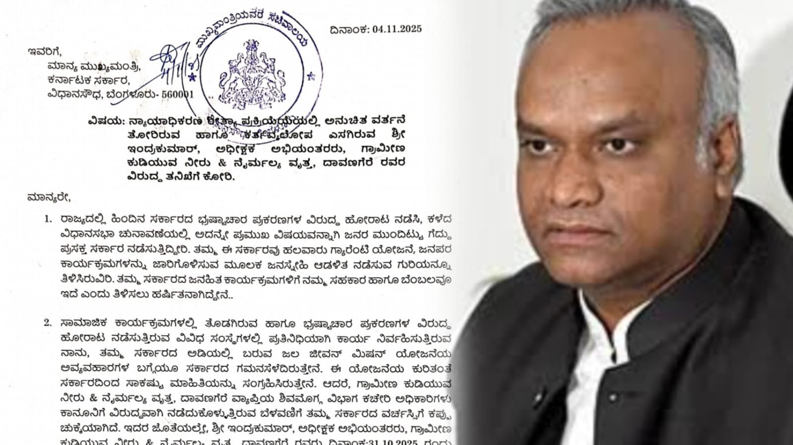ಬೆಂಗಳೂರು: ರಾಜ್ಯ ಸರ್ಕಾರದ ಅಧಿಕಾರಿಗಳು ಸಾರ್ವಜನಿಕರನ್ನು ಯಾವ ರೀತಿ ಹೀನಾಯವಾಗಿ ಕಾಣುತ್ತಾರೆ ಎಂಬುದಕ್ಕೆ ಈ ಪ್ರಕರಣ ಸಾಕ್ಷಿಯಾಗಿದೆ. ಹಿಂದಿನ ಬಿಜೆಪಿ ಸರ್ಕಾರದ ಅವಧಿಯಲ್ಲಿ ಹಗರಣಗಳ ವಿರುದ್ಧ ಹೋರಾಟ ನಡೆಸಿ ಭ್ರಷ್ಟಾಚಾರ ಮುಕ್ತ ಅಧಿಕಾರ ನೀಡುವ ಭರವಸೆಯೊಂದಿಗೆ ಅಧಿಕಾರಕ್ಕೆ ಬಂದಿರುವ ಸಿದ್ದರಾಮಯ್ಯ ಸರ್ಕಾರ ಯಾವ ರೀತಿ ಕ್ರಮ ಕೈಗೊಳ್ಳುತ್ತದೆ ಹಾಗೂ ಹಿಂದಿನ ಬೊಮ್ಮಾಯಿ ಸರ್ಕಾರದ ಭ್ರಷ್ಟಾಚಾರ ಪ್ರಕರಣಗಳನ್ನು ಬಯಲು ಮಾಡುವಲ್ಲಿ ಮುಂಚೂಣಿಯಲ್ಲಿದ್ದ ಸಚಿವ ಪ್ರಿಯಾಂಕ್ ಖರ್ಗೆಯವರು ಇದೀಗ ತಮ್ಮ ಇಲಾಖೆಯ ಅಧಿಕಾರಿಯ ಕರ್ತವ್ಯಲೋಪ ಬಗ್ಗೆ ಯಾವ ಕ್ರಮ ಕೈಗೊಳ್ಳುತ್ತಾರೆ ಎಂಬುದೇ ಕುತೂಹಲದ ವಿಷಯ. ಈ ಸರ್ಕಾರದ ಅವಧಿಯಲ್ಲೂ ಅಧಿಕಾರಿಗಳ ದೌಲತ್ತು, ಕರ್ತವ್ಯಲೋಪಗಳು ಸಾರ್ವಜನಿಕರಿಗೆ ಸವಾಲಾಗಿದೆ ಎಂಬುದಕ್ಕೆ ದಾವಣಗೆರೆಯಲ್ಲಿ ನಡೆದಿರುವ ಈ ಪ್ರಕರಣ ಸಾಕ್ಷಿಯಾಗಿದೆ. ಬೆಂಗಳೂರಿನ ಆಲ್ವಿನ್ ಎಂ ಎಂಬವರು ಸಲ್ಲಿಸಿದ್ದ ಮಾಹಿತಿ ಹಕ್ಕು ಮೇಲ್ಮನವಿಯೊಂದರ ವಿಚಾರಣೆ ವೇಳೆ ಗ್ರಾಮೀಣ ಕುಡಿಯುವ ನೀರು & ನೈರ್ಮಲ್ಯ ವೃತ್ತದ ಅಧೀಕ್ಷಕ ಅಭಿಯಂತರ…